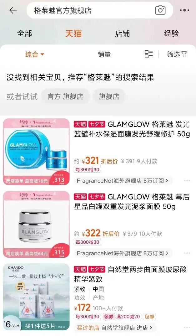 近期雅詩蘭黛集團旗下網(wǎng)紅品牌GLAMGLOW格萊魅被傳退出中國市場的消息就是一種真實反映。據(jù)記者觀察,在淘寶等電商平臺上已經(jīng)搜索不到格萊魅官方旗艦店,只留下第三方美妝零售商仍在售賣品牌產(chǎn)品。