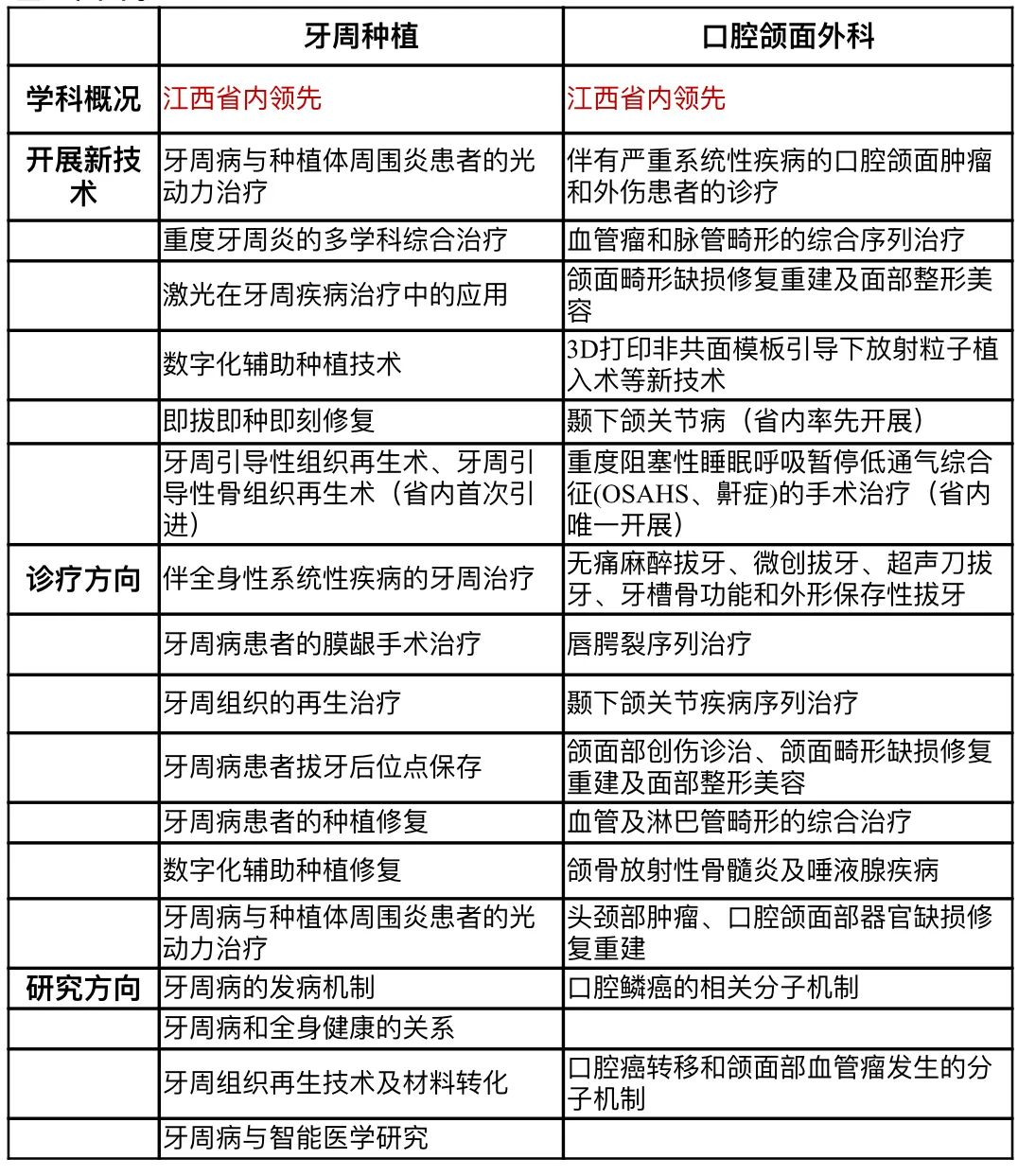 近年來,南昌大學(xué)第二附屬醫(yī)院口腔醫(yī)學(xué)診療中心先后開展了復(fù)雜膜齦手術(shù)、復(fù)雜牙周病的多學(xué)科綜合調(diào)節(jié)、種植牙的即拔即種和修復(fù)、數(shù)字化口腔種植修復(fù)術(shù)、股前外側(cè)皮瓣游離移植術(shù)、冠狀切口鼻眶篩(部)骨折切開復(fù)位術(shù)、SMAS瓣、胸鎖乳突肌瓣腮腺腫瘤術(shù)后缺損充填術(shù)等新技術(shù),并在省內(nèi)開展了牙周病與植體周疾病的光動(dòng)力調(diào)節(jié)。