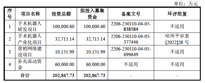 思哲睿此次IPO擬募集20億元,將用于手術機器人研發(fā)項目、手術機器人產業(yè)化項目、營銷網絡建設項目以及補充流動資金。這些項目建設周期均在2~3年左右,尤其值得注意的是,思哲睿生產線建設,也就是手術機器人產業(yè)化項目建設周期也長達24個月。