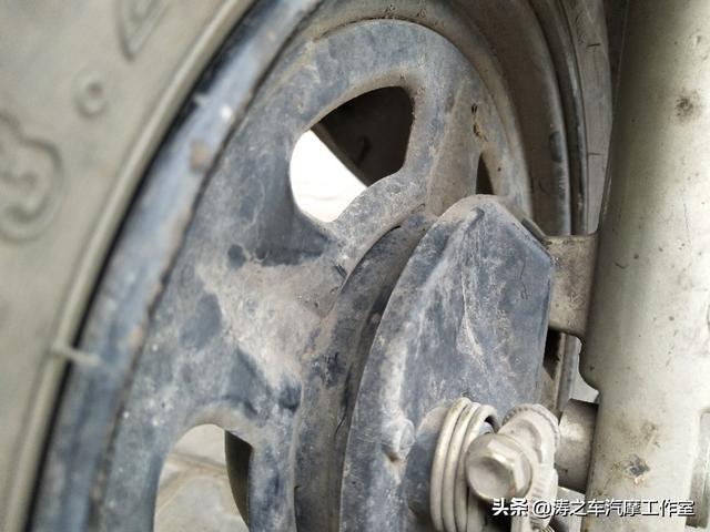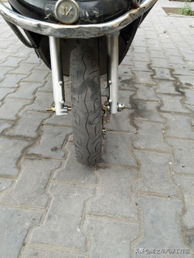 難道維修工就不知道把這個前輪胎調整到中間?不是他不想調,而是他把輪胎調整在中間以后,前剎車就會失。