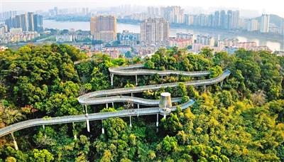 在福建省福州市金牛山公園福道拍攝的森林城市景觀。 新華社記者 魏培全攝