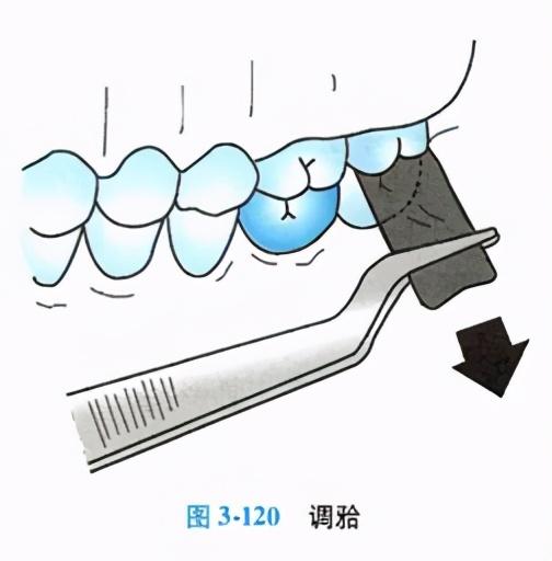 使用牙線檢查修復(fù)體與鄰牙的接觸關(guān)系,以及鄰面是否殘留粘固劑或粘接劑,若殘留有粘固劑、粘接劑應(yīng)仔細(xì)去除,否則會損傷牙支持組織。