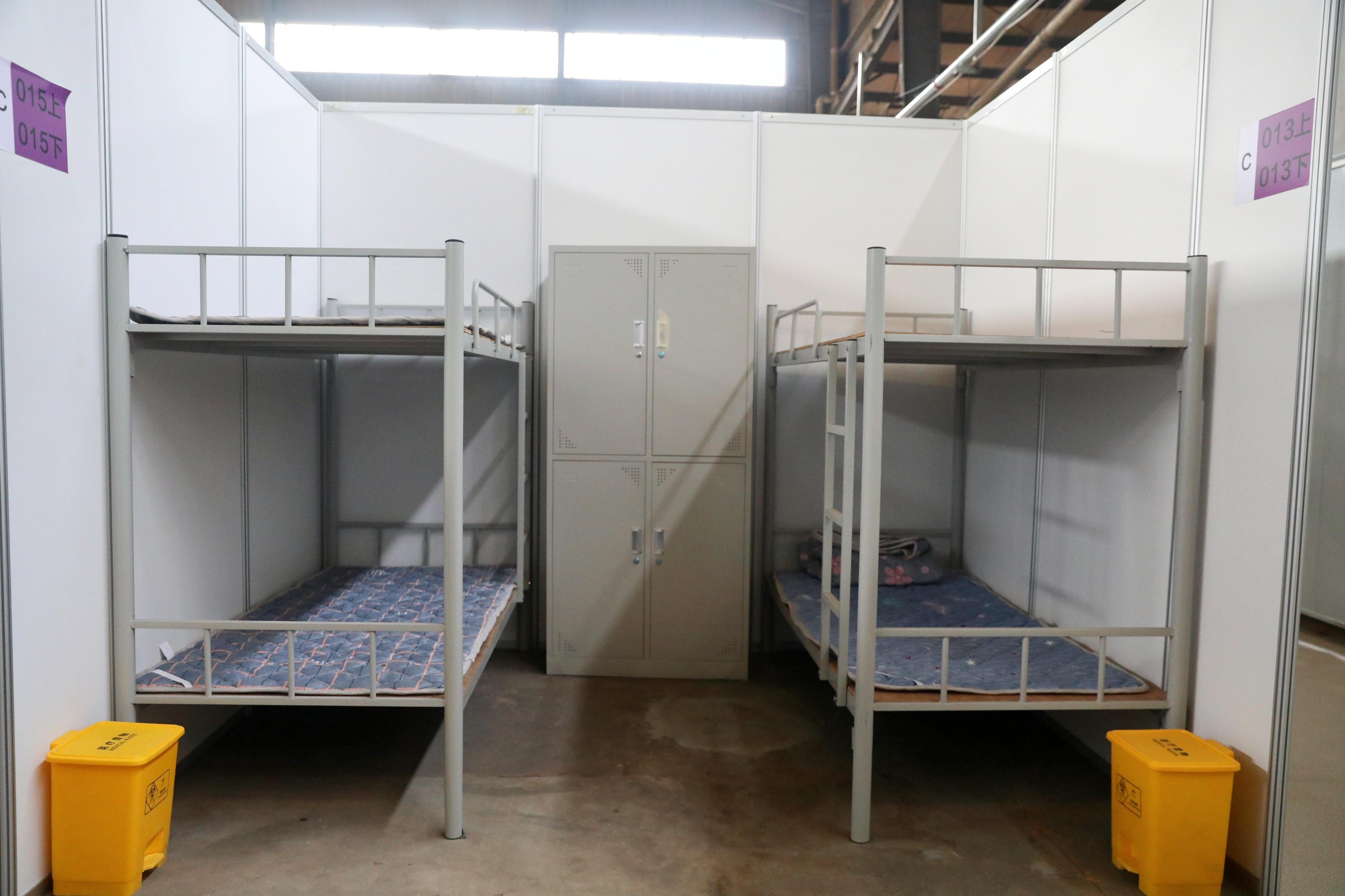 “淋浴間、病房、衛(wèi)生間、飲水區(qū)、儲(chǔ)物間、醫(yī)護(hù)工作室……”記者在現(xiàn)場(chǎng)看到,部分區(qū)域的建設(shè)已接近尾聲,相關(guān)設(shè)施完善,功能分區(qū)明確,施工工人正進(jìn)行水、電等設(shè)施的完善。除此之外,部分房間已經(jīng)鋪好了床位,貼上了編號(hào)。