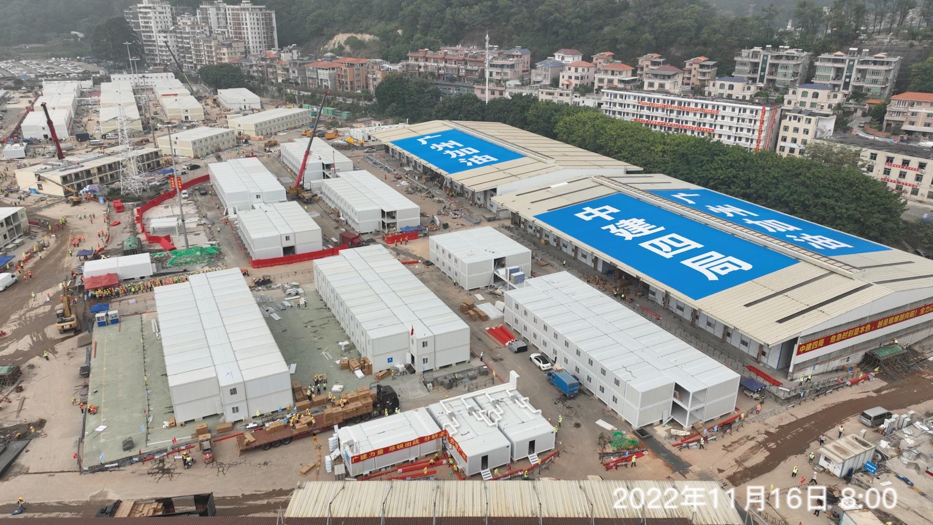記者了解到,項(xiàng)目分為南區(qū)、北區(qū)、西區(qū)三個(gè)主要建設(shè)地塊,于11月11日投入建設(shè),建設(shè)內(nèi)容包括新建集裝箱、場(chǎng)地挖填,建設(shè)完成后能為醫(yī)護(hù)人員提供居住房間,配置床鋪、桌椅、風(fēng)扇、集成衛(wèi)浴等多種生活物資;截至11月16日下午,北區(qū)已完成111個(gè)集裝箱安裝及安置;南區(qū)已完成新建410個(gè)集裝箱,完成率達(dá)57%;西區(qū)初步開始吊裝。北區(qū)計(jì)劃于11月16日交付,南區(qū)、西區(qū)計(jì)劃于11月22日交付。