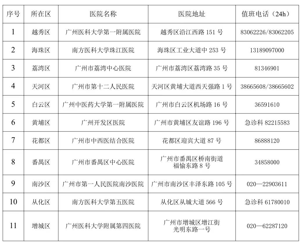 各區(qū)蛇咬傷指定救治醫(yī)院名單: