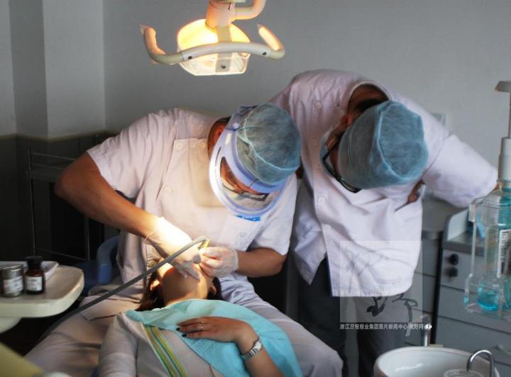 牙醫(yī)在為市民做口腔美容 圖文無關