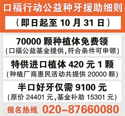“早晨還缺著牙,一會(huì)兒工夫就種上了半口牙,而且當(dāng)天戴牙當(dāng)天就能吃東西。”說起自己的種牙經(jīng)歷,65歲的何叔叔一邊為自己以前全口無牙的生活唏噓不已,一邊難掩興奮。為了讓廣大市民合理安排時(shí)間、有序就診,及時(shí)種上一口好牙,口福行動(dòng)特增設(shè)數(shù)條全口、半口種牙熱線,以方便市民預(yù)約,更推出70000顆種植體免費(fèi)領(lǐng)、半口修復(fù)9100元等特惠名額。