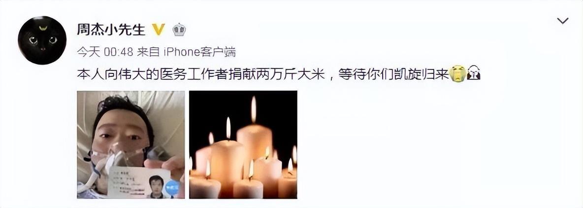 周杰給直接捐了2萬斤的大米,為了大米能運輸?shù)轿錆h,自己還親自去了武漢協(xié)調(diào)。