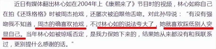 2004年,林心如在小s的引導(dǎo)下,在節(jié)目中自曝, 拍《還珠》期間遭周杰強吻,舌頭抵住了她的牙齒。
