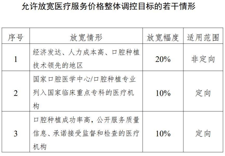 當前醫(yī)療服務價格整體已普遍低于4500元每顆的地區(qū),鼓勵維持現(xiàn)行低價。允許經(jīng)濟發(fā)達、人力等成本高的地區(qū)根據(jù)本地實際放寬醫(yī)療服務價格調(diào)控目標,放寬比例不超過20%;鼓勵地方對于口腔種植高等特定情形的醫(yī)療機構(gòu),探索定向?qū)捤傻目谇环N植醫(yī)療服務價格整體調(diào)控政策。