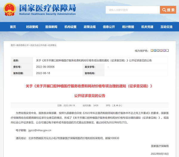 據(jù)悉,口腔種植領(lǐng)域收費不規(guī)范、費用負擔重等問題長期存在,隨著生活水平提高和人口老齡化程度加深,成為困擾群眾的民生痛點。今年3月以來,四川、陜西、江蘇、寧夏、山西等多個省份頻頻傳出種植牙集采相關(guān)的消息。此次《征求意見稿》明確了包括“集采”在內(nèi)的四個整改方向。一要規(guī)范口腔種植醫(yī)療服務和耗材收費方式,比如,公立醫(yī)療機構(gòu)提供口腔種植醫(yī)療服務,采取“服務項目+專用耗材”分開計價的收費方式;二是強化口腔種植等醫(yī)療服務價格調(diào)控,對于群眾反映強烈、費用負擔重的種植體植入費、牙冠置入費、植骨手術(shù)費應以降價為主;三是精心組織開展種植牙耗材集中采購,廣泛發(fā)動各級各類醫(yī)療機構(gòu)參加;四是實施口腔種植收費綜合治理,其中包括各地醫(yī)療保障部門要將價格投訴舉報較多、定價高于當?shù)仄骄?、拒絕或消極參與種植牙集采的各級各類醫(yī)療機構(gòu)列入價格異常警示名單,并每季度在當?shù)蒯t(yī)療保障局官方網(wǎng)站公開通報。