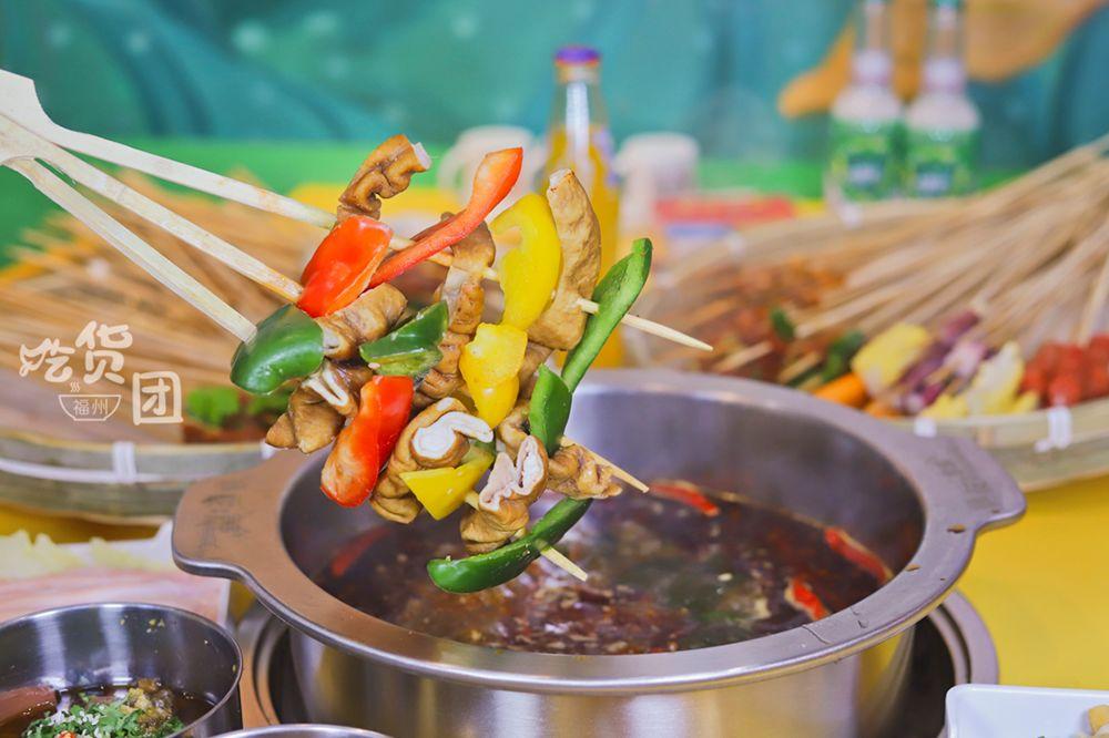 班花串串香有近百種串串涮品,串串葷素同價都是0.8元/根。加上5.8折只需要4毛6一根,媽耶這物價真是回到了從前!
