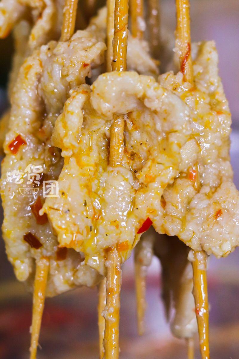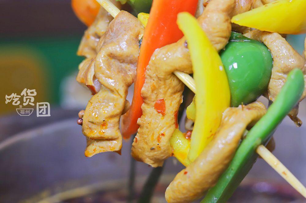 班花串串香特制的滑肉,用的是緊實的豬頸肉,外層裹上一層薄薄的地瓜粉,剛入嘴有點像牛滑一樣滑嫩,但吃著又特別有嚼勁。