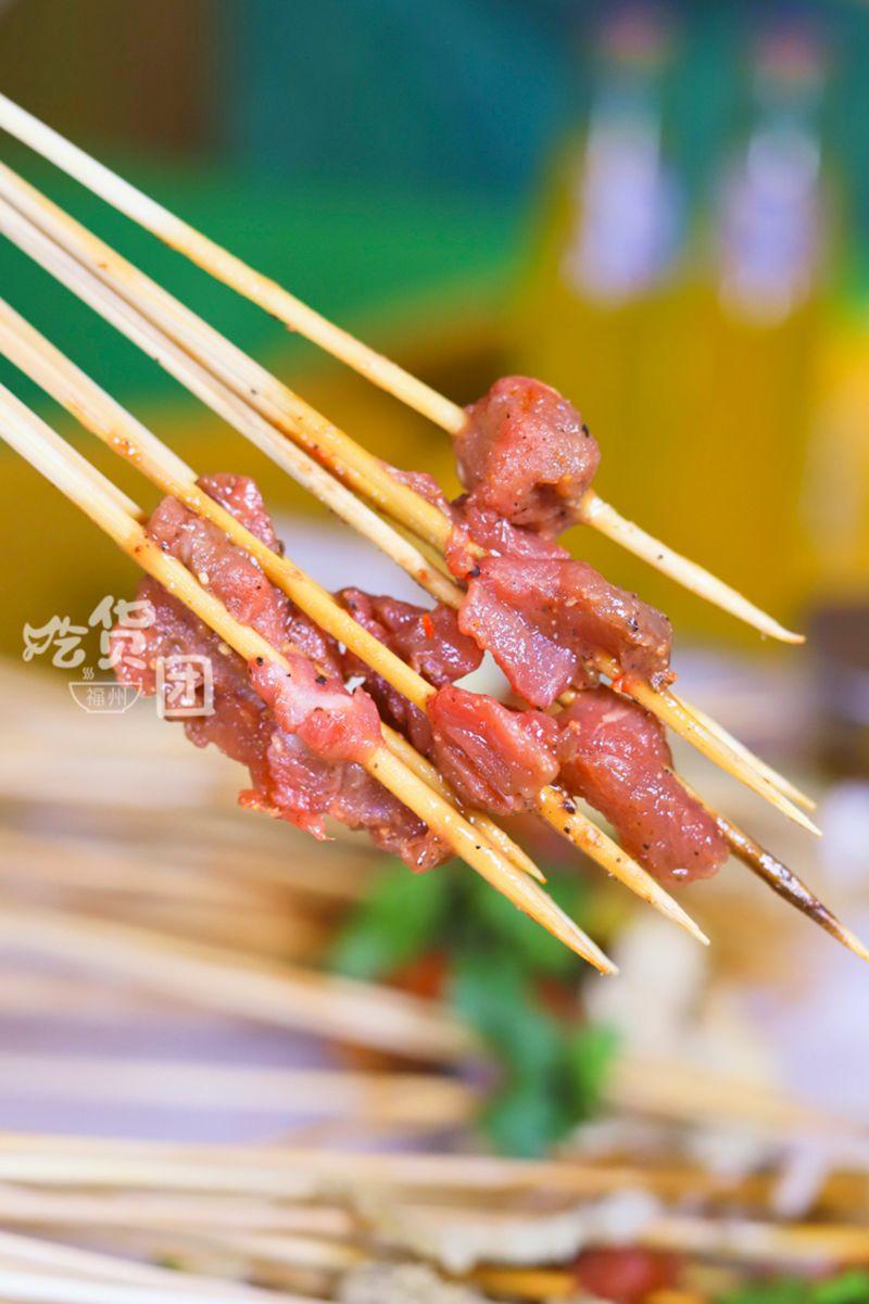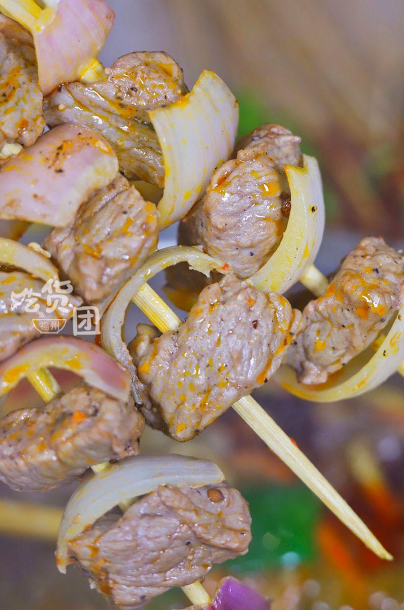 串上的牛肉只能用「塊」來形容,每一塊直徑都有3cm左右,用牙齒撕扯時肉汁會洶涌地躍進你舌尖。對啦,連同洋蔥一起吃更香!