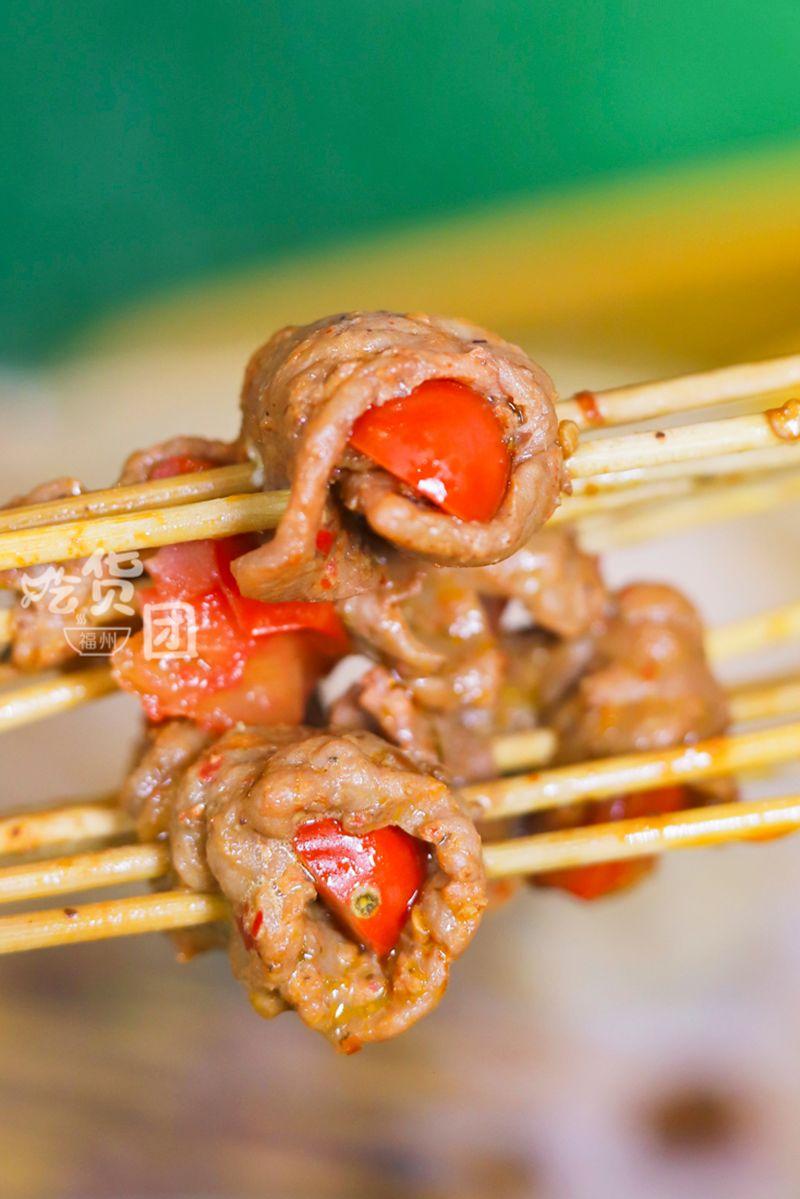 番茄牛肉是我在其他店沒見過的,涮熟時里面的番茄將將要爆汁,咀嚼時容易被豐腴的汁水燙得直哈氣,但卻又愛極了它香辣酸甜的味道,我們拿了足有30串還是不過癮。