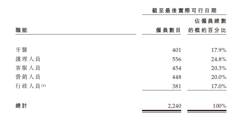 從其員工構(gòu)成來看,或許銷售真的是牙博士的生產(chǎn)力。根據(jù)招股書,截至后報(bào)告期內(nèi),公司的牙醫(yī)只有401名,少于客服人員的454名和營銷人員448名。