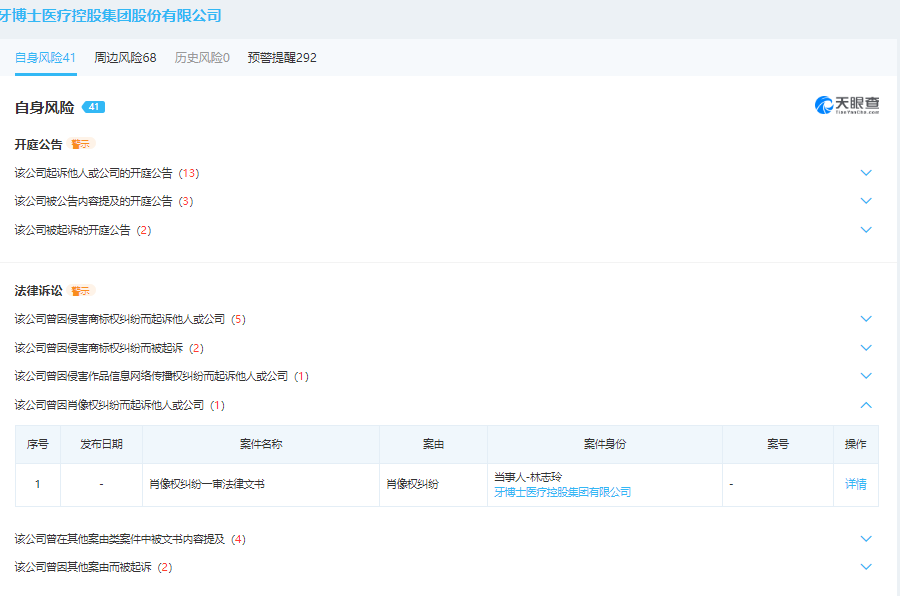 對于牙博士來說,營銷不僅擠壓了其凈利潤空間,還為公司帶來了許多監(jiān)管層面的風(fēng)險(xiǎn)。據(jù)天眼查顯示,牙博士曾因肖像權(quán)被起訴以及旗下門診曾數(shù)次涉嫌違法被相關(guān)部門處罰。