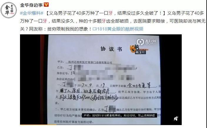 但是近期在浙江義烏,一名男子在一家美容院,花了四十多萬(wàn)做種植牙,沒(méi)想到?jīng)]過(guò)多久就損壞了。