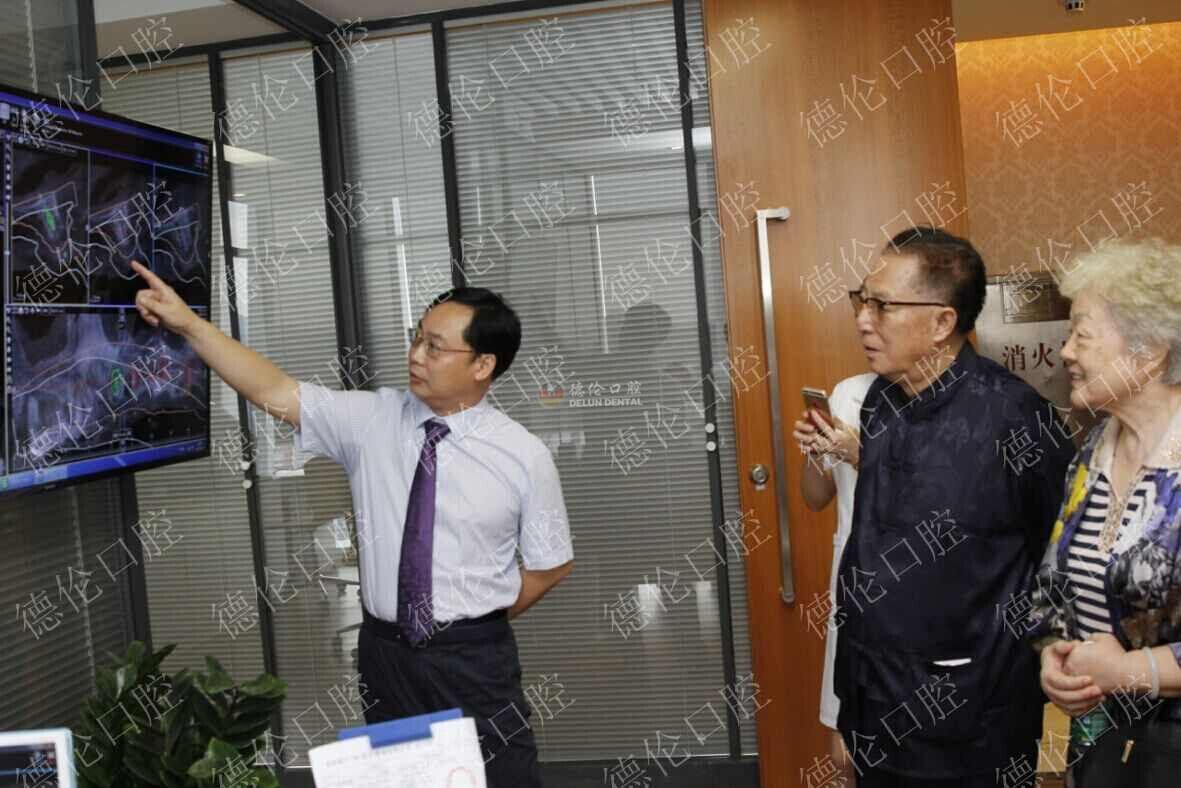 德倫口腔徐世同院長為兩位老領(lǐng)導(dǎo)講解數(shù)字化種植牙模擬設(shè)計(jì)理念