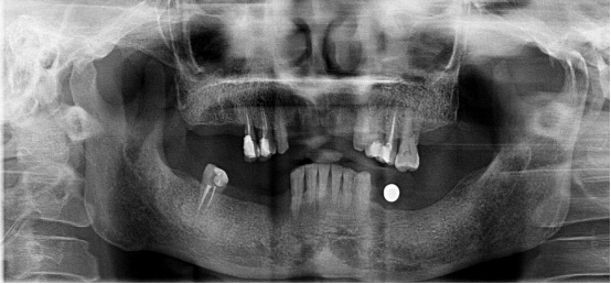 郭先生今年67歲,是位白手起家的成功企業(yè)家。早期忙碌的工作讓他疏于口腔保健,導(dǎo)致他上下牙列缺失。郭先生表示在二十年前在國外已經(jīng)做過種植牙,但是近期來我院就診時(shí)其之前種植牙的種植體已經(jīng)滑入到上頜竇內(nèi)。