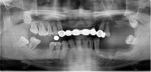 病例簡(jiǎn)介:周女士,女,57歲,家住泉州,因下半口牙在當(dāng)?shù)胤N植不成功而來我院就診。