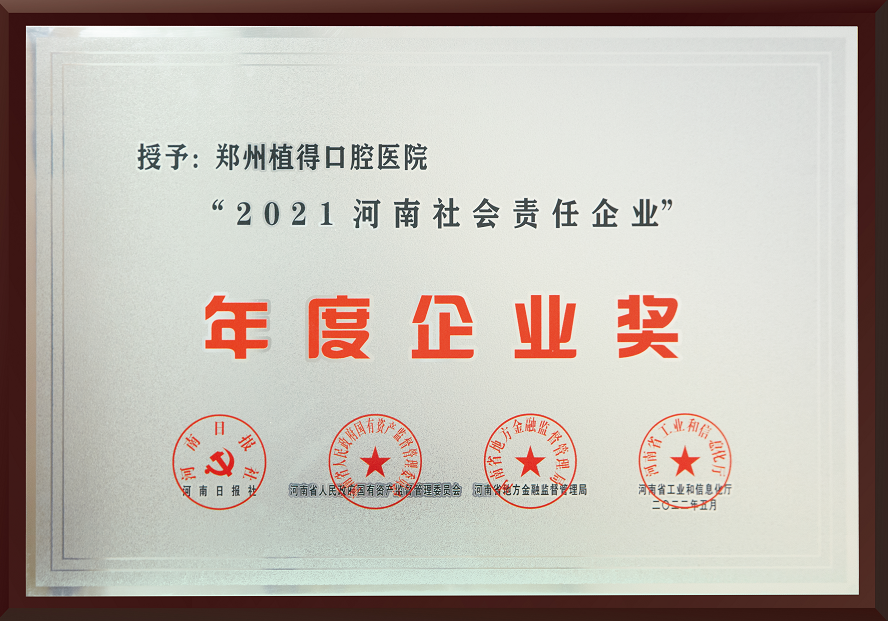 2022年7月2日,“2021河南社會責任企業(yè)暨社會責任突出貢獻企業(yè)家頒獎盛典”在鄭州黃河迎賓館召開。鄭州植得口腔醫(yī)院歷經(jīng)層層嚴格選拔,從400多家企業(yè)中脫穎而出,憑借其深耕口腔行業(yè)、堅守品質(zhì)醫(yī)療、持續(xù)履行社會責任,斬獲“2021河南社會責任企業(yè)”殊榮。