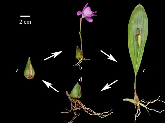 艷花獨蒜蘭的生活史 (圖片來源 Zhang et al., 2022)