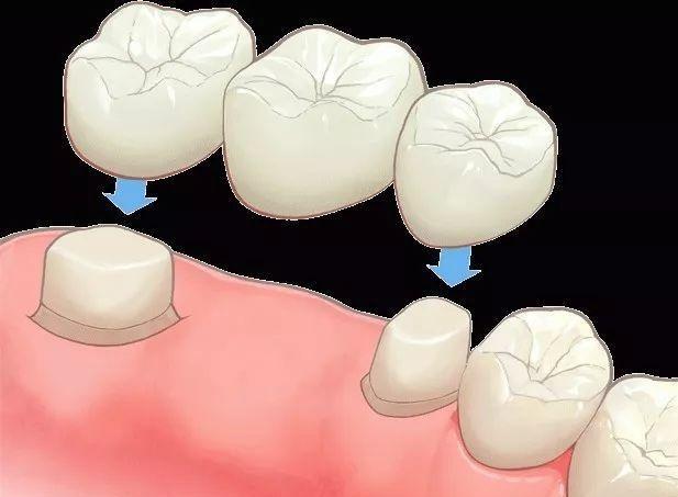 鑲烤瓷牙就是平時大家常說的鑲牙,通過搭橋的方式來修復缺失的牙齒: