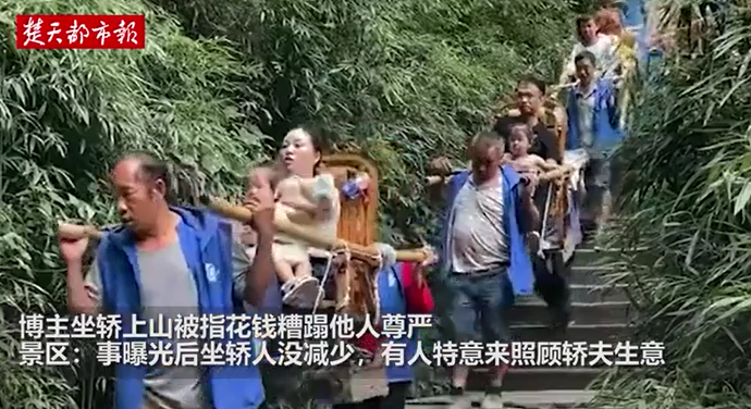 近日,有博主發(fā)布了自己在重慶市天生三橋景區(qū)坐轎子上山的視頻,遭部分網(wǎng)友譴責(zé):“大家都生而為人,你憑什么花錢踐踏轎夫的尊嚴(yán)?”