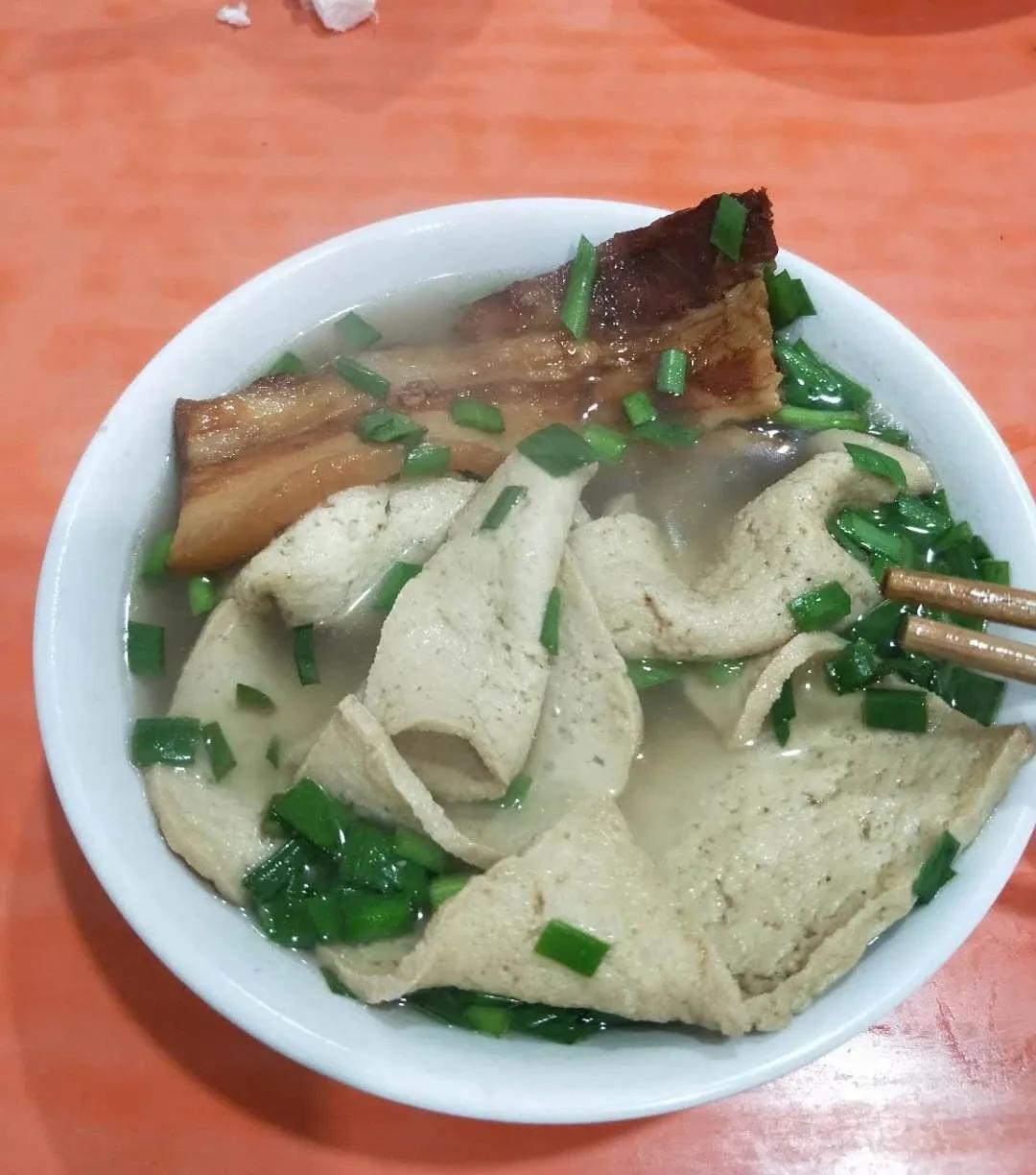 鼓樓豆腐片,做法也簡(jiǎn)單。一個(gè)里面是秘制的高湯鍋,在小火爐上小火慢煨,里面是豆腐卷和豆腐片,客人吃完一波,店主隨手加新的繼續(xù)小火慢煨,另外一個(gè)鍋里是鹵肉片,鹵肉片都是五花肉,肥瘦相間。有客人來(lái),店主撈起豆腐片若干,盛入碗中,撒上韭菜碎,這邊高湯澆上,頓時(shí)香氣撲鼻一碗豆腐片就成了。夾起一塊豆腐片,吹去熱氣,隨著牙齒輕輕咬下,高湯的濃香和韭菜的清香從豆腐片的小孔鉆出來(lái),彌漫在口腔各處。被焯的恰到好處的豆腐片,已經(jīng)變得柔軟但是沒(méi)有丟掉韌性,這微微的彈性給舌頭帶來(lái)活力,忍不住要接著咬第二口。然后不知不覺(jué)中一碗豆腐片就被干掉了,后再把剩下的湯一口氣喝掉,真是蕩氣回腸,身體通達(dá)。如果覺(jué)得這太清淡了,還可以讓老板加兩片五花肉片。鹵好的五花肉片,肥瘦相當(dāng),很少出現(xiàn)純肥或者純瘦的現(xiàn)象,肥一點(diǎn)的會(huì)更香,瘦一點(diǎn)的也會(huì)因?yàn)樵诟邷斜混辛撕芫?,而口感綿軟。當(dāng)然好的吃法就是用筷子把五花肉夾在兩片豆腐之間,這種不一樣的三明治口感,會(huì)讓每個(gè)味覺(jué)細(xì)胞都吶喊起來(lái)。習(xí)慣吃辣的朋友可以把桌子上老板制作的辣椒油狠狠的放幾勺,一碗湯下去,渾身都冒起了熱汗,冬天來(lái)一碗,就會(huì)無(wú)視寒冷的存在。如果是夏天,不妨來(lái)一瓶涼啤酒,就是兩字,酸爽。