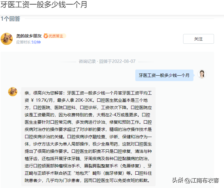 5.坐標:南方一線城市,民營機構招5年以上執(zhí)業(yè)牙科主治醫(yī)生,將北方某省會醫(yī)院醫(yī)生挖走,年收入30萬。機構給的招聘待遇:執(zhí)業(yè)醫(yī)師20萬左右,主治醫(yī)師30萬-200萬。上限是我接觸過種植牙醫(yī)里技術好的拿到的工資標準。