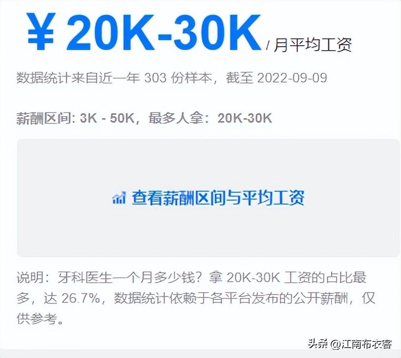 根據(jù)丁香人才發(fā)布的《2021 年度中國醫(yī)院薪酬調(diào)研報告》,對包括京滬多所醫(yī)院在內(nèi)的全國190家公立醫(yī)院19 個熱門科室進行工資調(diào)查。公立醫(yī)院職稱不同,牙醫(yī)收入并沒有那么高。其中正高級年工資收入28萬(每個醫(yī)院正高級職稱醫(yī)生稀少),平均年工資只有20萬左右。