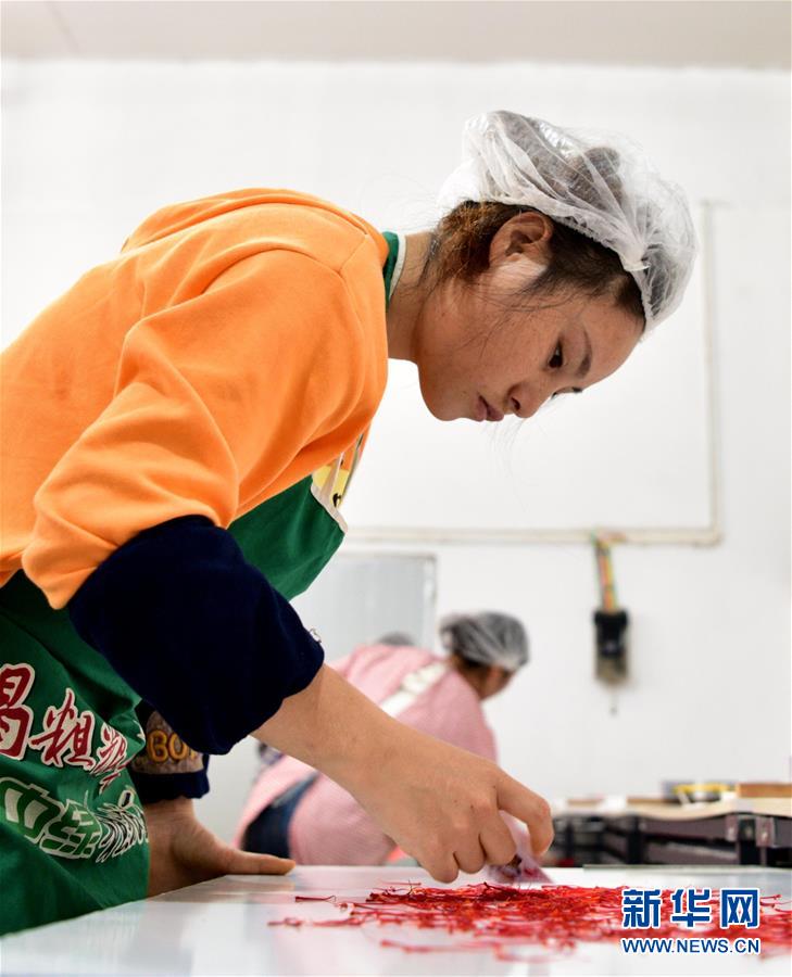 10月29日,貴州省黔東南苗族侗族自治州岑鞏縣羊橋土家族鄉(xiāng)祝壩村,村民在擇取西紅花花絲。新華社發(fā)(蔡興文 攝)