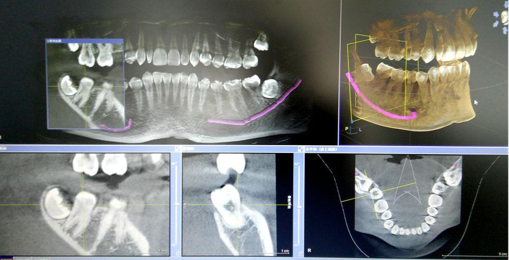 通過CBCT可以觀察阻生牙、埋伏牙的牙根彎曲情況及與上頜竇、鼻底、下牙槽神經管、頦孔等重要解剖結構的關系,方便醫(yī)生拔牙前的術前評估。也可以觀察頜骨囊腫等病變在三維空間中的范圍,了解病變與上頜竇、神經管等重要解剖結構的關系,提高手術。