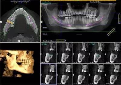 CBCT掃描可準確分析頜骨植入?yún)^(qū)的骨質、骨量、骨密度及植體與下頜神經管、上頜竇的關系,臨床醫(yī)生可以在圖像上模擬種植,直接與患者進行溝通及交流,并可指導手術者在手術方案中避開危險區(qū)域,手術的性。此外,臨床醫(yī)生還可以利用CT數(shù)據(jù)進行數(shù)字模型重建,配合軟件預先做好手術模板使種植手術更快捷。
