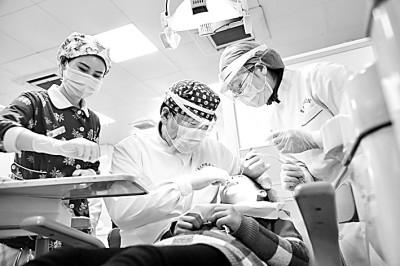 在空軍軍醫(yī)大學口腔醫(yī)院,口腔預防科醫(yī)生正在做口腔診療。新華社發(fā)