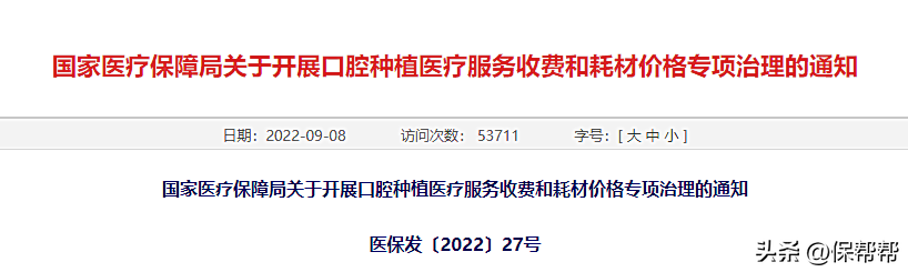 (1)公立醫(yī)療機構(gòu)口腔種植項目實行政府指導價管理的地區(qū),各省級醫(yī)療保障部門要在2022年12月底前重新制定公布政府指導價。