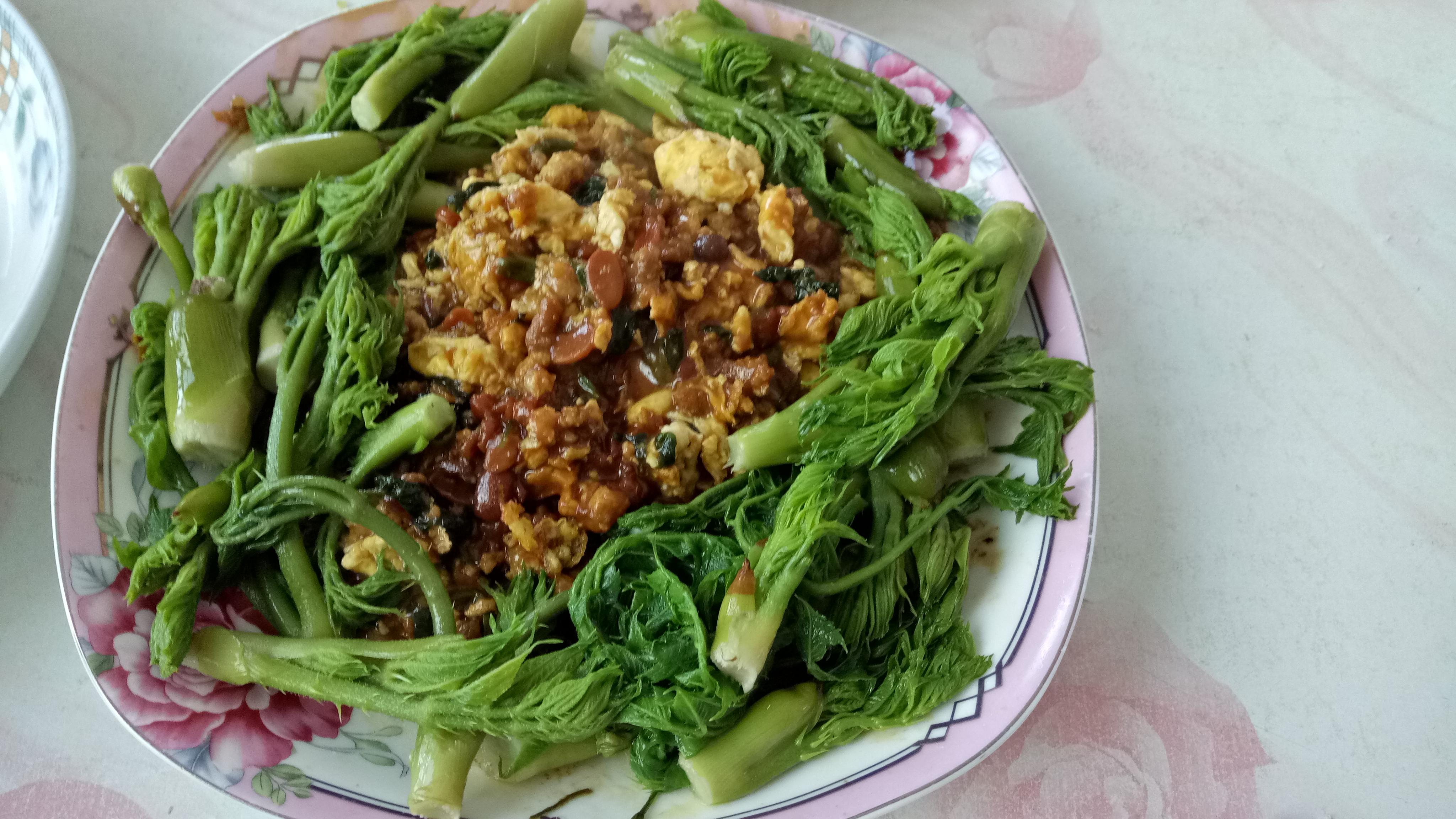 刺龍芽含有16種氨基酸和22種微量元素,其主要成份為木皂甙,它的根皮中總皂甙含量是人參根的3倍,營養(yǎng)價(jià)值堪比人參。傳說張三豐年幼時(shí)患過眼疾,是云庵道長(zhǎng)使用刺龍芽給治好的,張三豐后來的修道煉丹都必用刺龍芽。刺龍芽的藥用價(jià)值是被中醫(yī)認(rèn)可的,它的根皮可入藥,具有補(bǔ)氣、祛風(fēng)、利濕、止痛、活血、強(qiáng)筋骨的功,還可以調(diào)節(jié)肝炎、糖尿病、風(fēng)濕性關(guān)節(jié)炎、腎虛陽痿、胃痙攣、腎炎水腫、腸胃病等疾病。藥食同源是一種文化,既有藥用價(jià)值又可日常食用的刺龍芽,不愧為山中珍寶,說刺龍芽是“山野菜”一點(diǎn)也不為過。在東北,刺龍芽的普遍吃法就是焯水蘸醬,配雞蛋醬比較美味。還有很多人不知道,干煸刺龍芽更香。