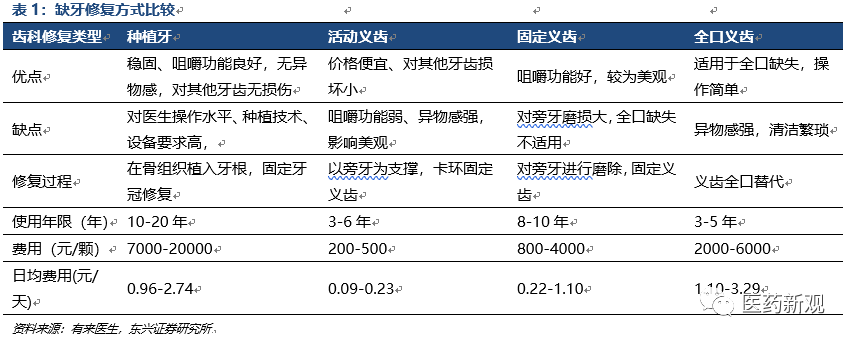 種植牙的修復(fù)果優(yōu)。通過比較當(dāng)前常用的4種牙齒修復(fù)方式來看,種植牙具有植入后牙齒穩(wěn)固、咀嚼功能良好,患者無異物感,且對其他牙齒無損傷,舒適且美觀,使用年限達(dá)到約10-20年,但是種植牙的修復(fù)過程中,對操作醫(yī)生、設(shè)備具有更高的要求,且單顆種植牙的價格較高,患者費用負(fù)擔(dān)較大。