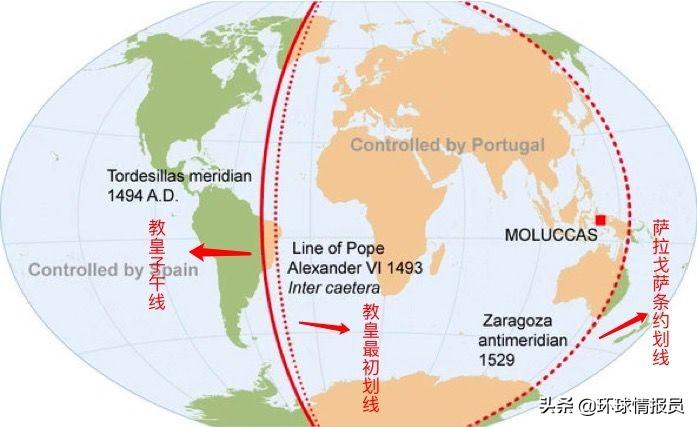 新航路開辟以后,西、葡兩大西歐強(qiáng)國為了開拓歐洲以外的世界,在海上展開了激烈的領(lǐng)土競爭和搶奪,羅馬教皇擔(dān)心他們會引發(fā)大戰(zhàn),所以便出面調(diào)停(教皇有決定非基督教地區(qū)歸屬的權(quán)力)。后在教皇的仲裁之下,這條用來瓜分世界的教皇子午線就誕生了。