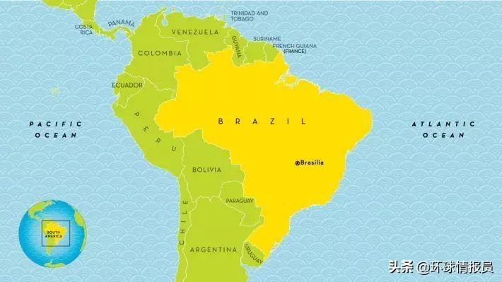▲黃色色塊為巴西,所處地理位置為南美洲的東部
