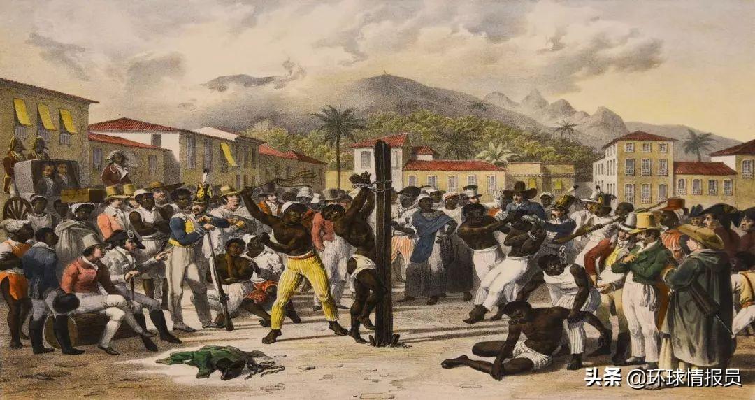 ▲奴隸主抓到奴隸后,會為了威懾逃跑奴隸,在大街上實(shí)施鞭刑。