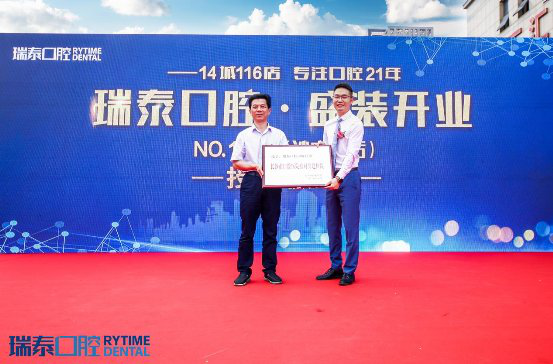 左一為長(zhǎng)沙市口腔醫(yī)院黨委書記曾春明,右一為瑞泰長(zhǎng)沙地區(qū)總經(jīng)理韓良