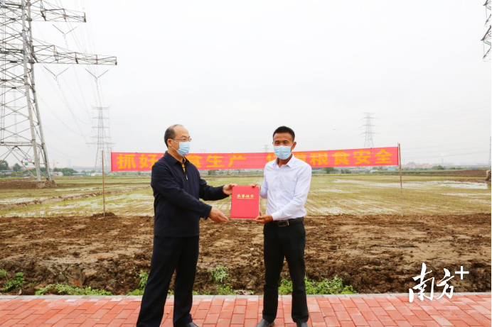 在這片充滿希望的田野上,榮獲2021年全國糧食生產(chǎn)先進個人(糧食生產(chǎn)者)的東莞“種糧大戶”姚雅從市農(nóng)業(yè)農(nóng)村局副局長林映鵬手中接下了這張沉甸甸的證書。