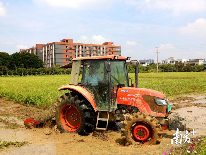 3月29日,在東莞市厚街鎮(zhèn)源泉路旁邊的耕地內(nèi),伴著農(nóng)機的轟鳴響聲,廣袤的田野里奏響了“春耕曲”。