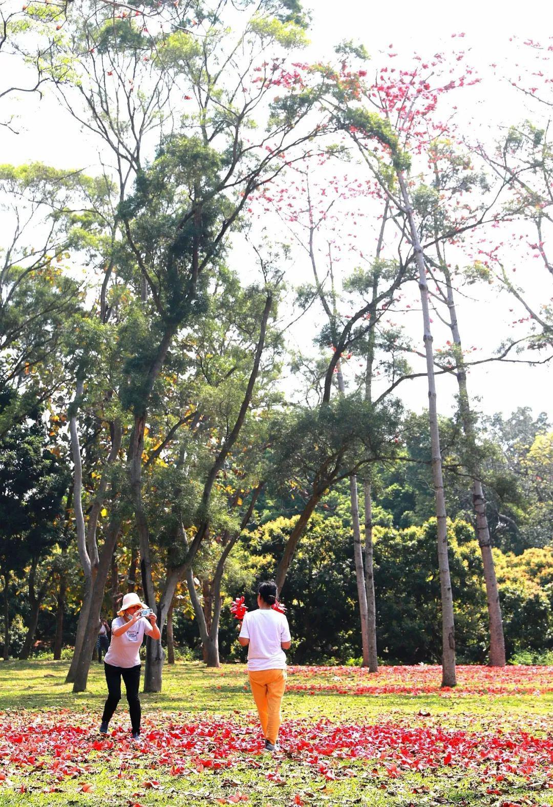 蓮花山公園、筆架山公園種有煙火樹(shù),這種花近看宛若空中綻放的煙花。