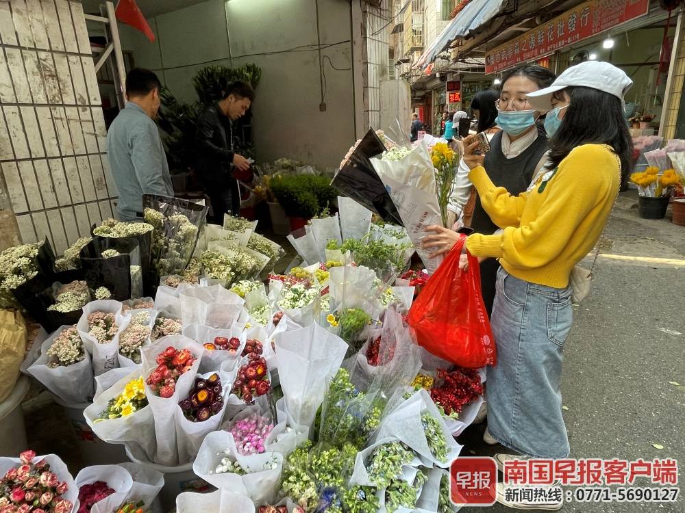 兩位女士在南寧市七星路一巷的鮮花批發(fā)市場里選購。南國早報客戶端記者張文卉/攝
