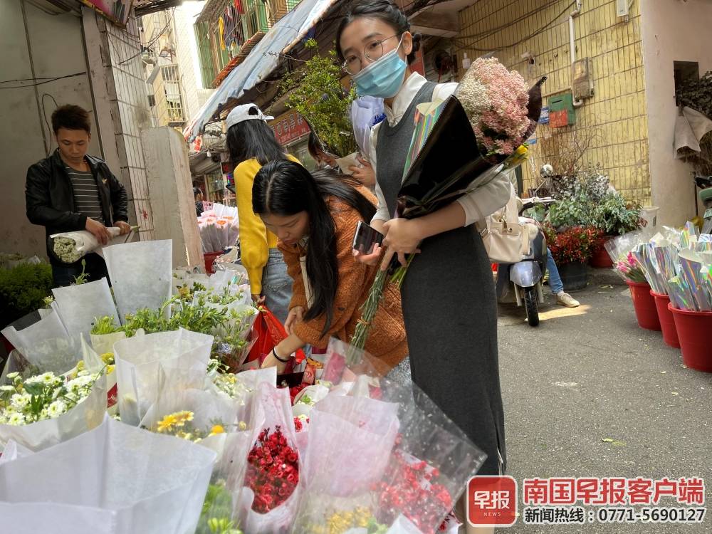 消費者有選擇性地購買相對便宜的花材。南國早報客戶端記者張文卉/攝