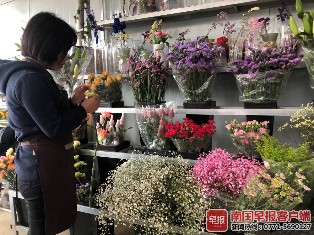 鮮花價格上漲較大,消費者的購買量減少,花店老板很無奈。南國早報客戶端記者張文卉/攝