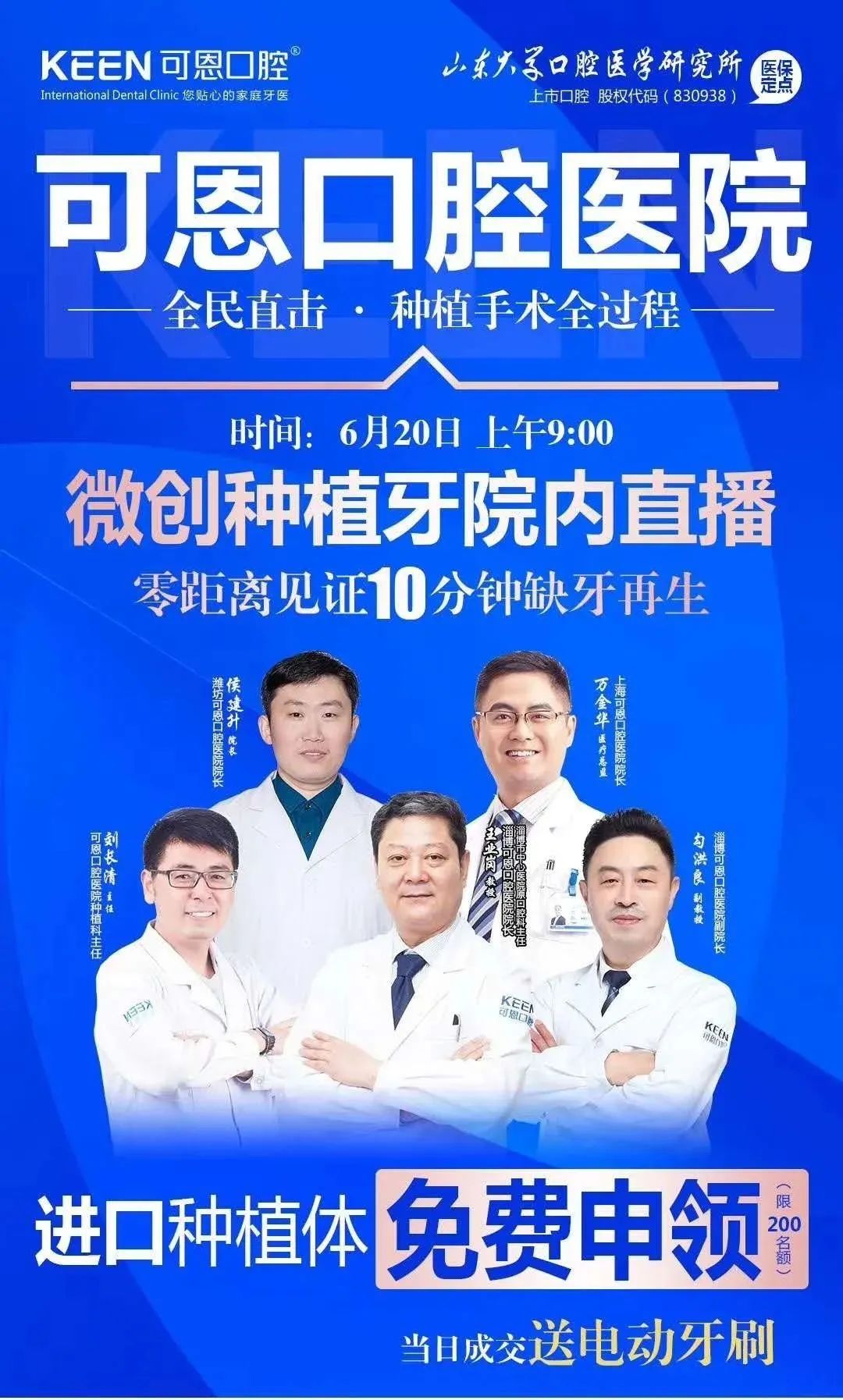 本次種植牙直播手術(shù),由擅長疑難案例修復(fù)種植的淄博可恩口腔醫(yī)院院長王業(yè)崗親自操刀,同時(shí),上??啥骺谇会t(yī)院院長萬金華、濰坊可恩口腔院長侯建升、淄博可恩口腔醫(yī)院副院長勾洪良,種植科主任劉長清聯(lián)合親診,這幾位口腔專家臨床經(jīng)驗(yàn)均在多年以上、種牙案例超過萬例,在數(shù)字化種植、種植、半口全口種牙、疑難復(fù)雜種植方面經(jīng)驗(yàn)豐富。